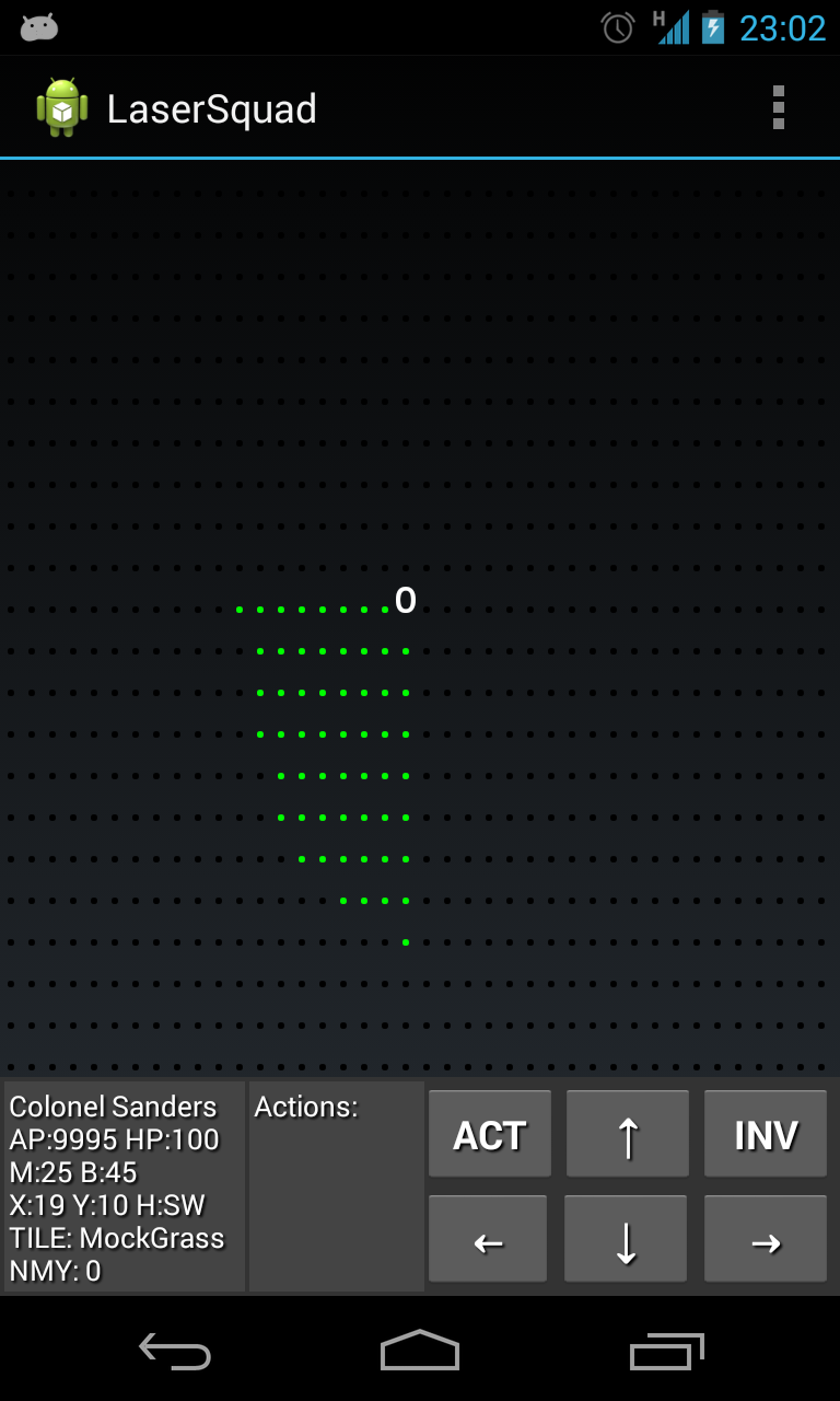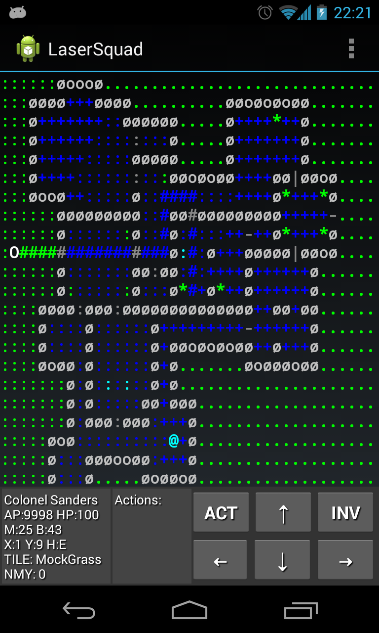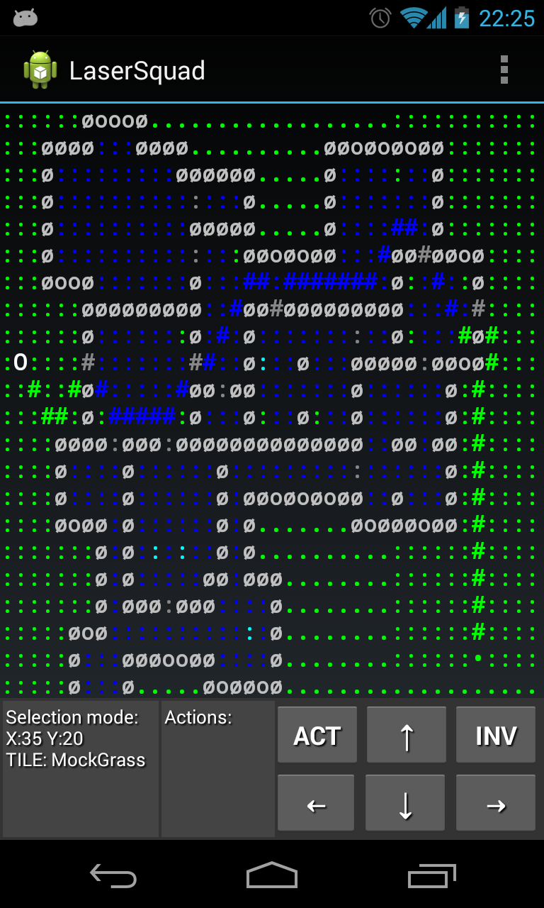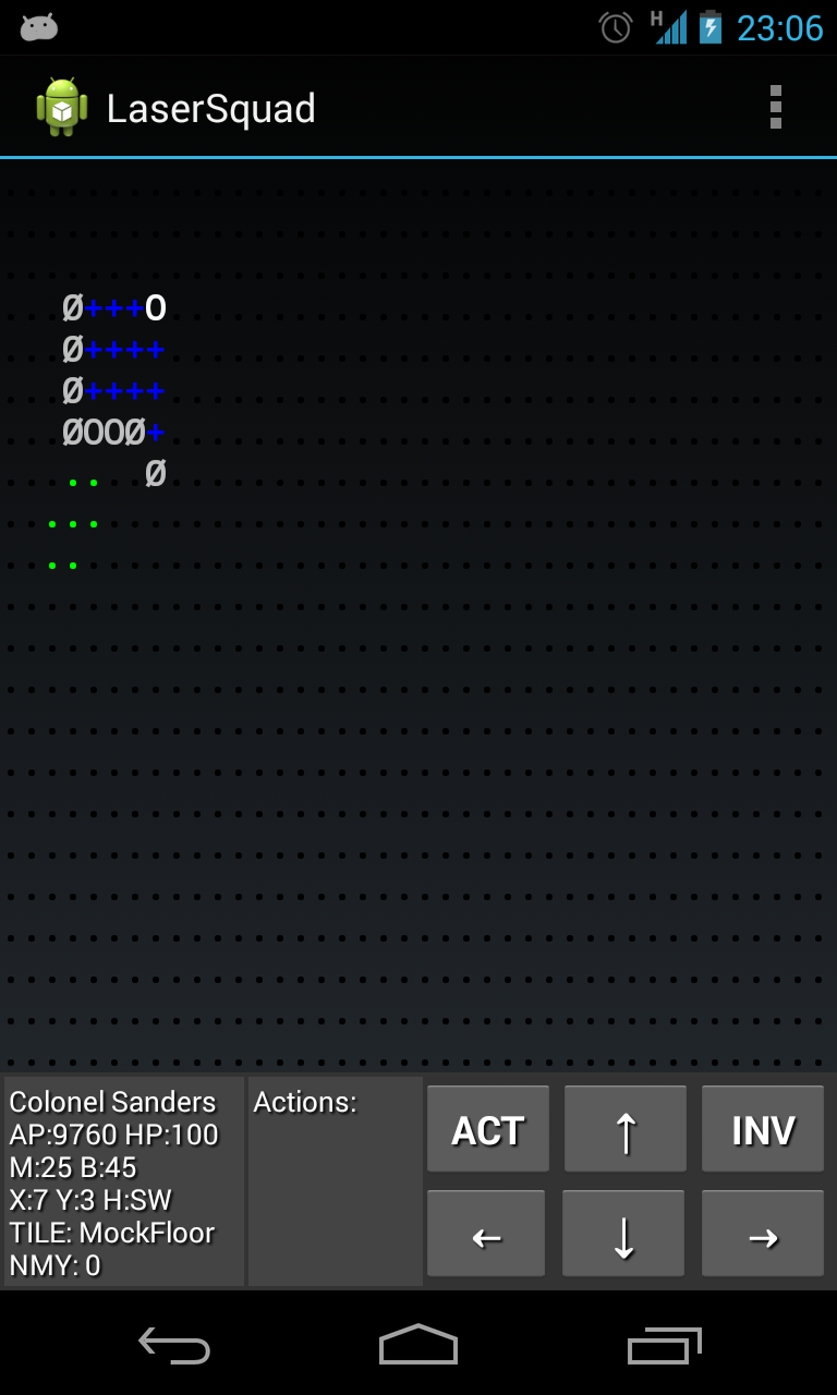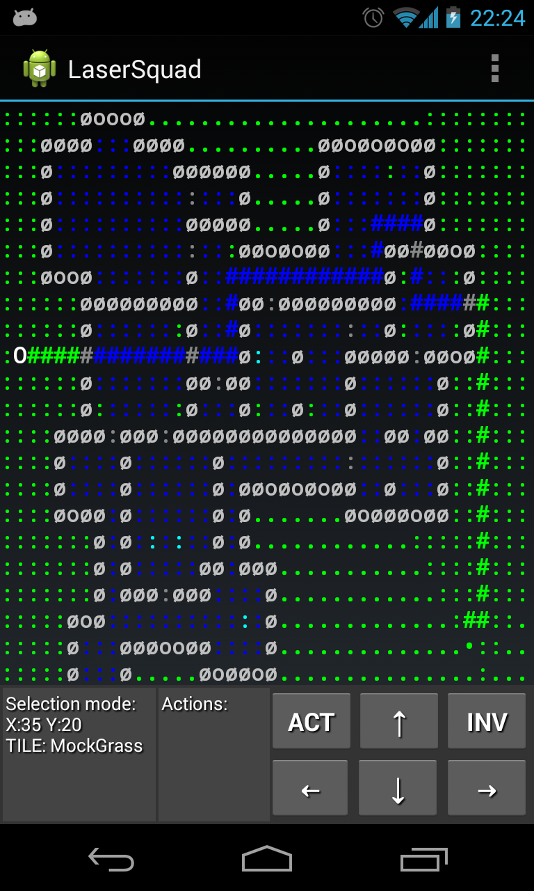 Since I made a mock scenario which uses our previously created mock map, I also added two teams and all units from the first scenario of the original Laser Squad game. Then I implemented methods to move to the next unit, that means all units in one team can be moved now; and also methods to end the turn so that next team has the opportunity to move their units. Of course now all units from one team are shown on the map in red color, and the currently selected unit remains white.