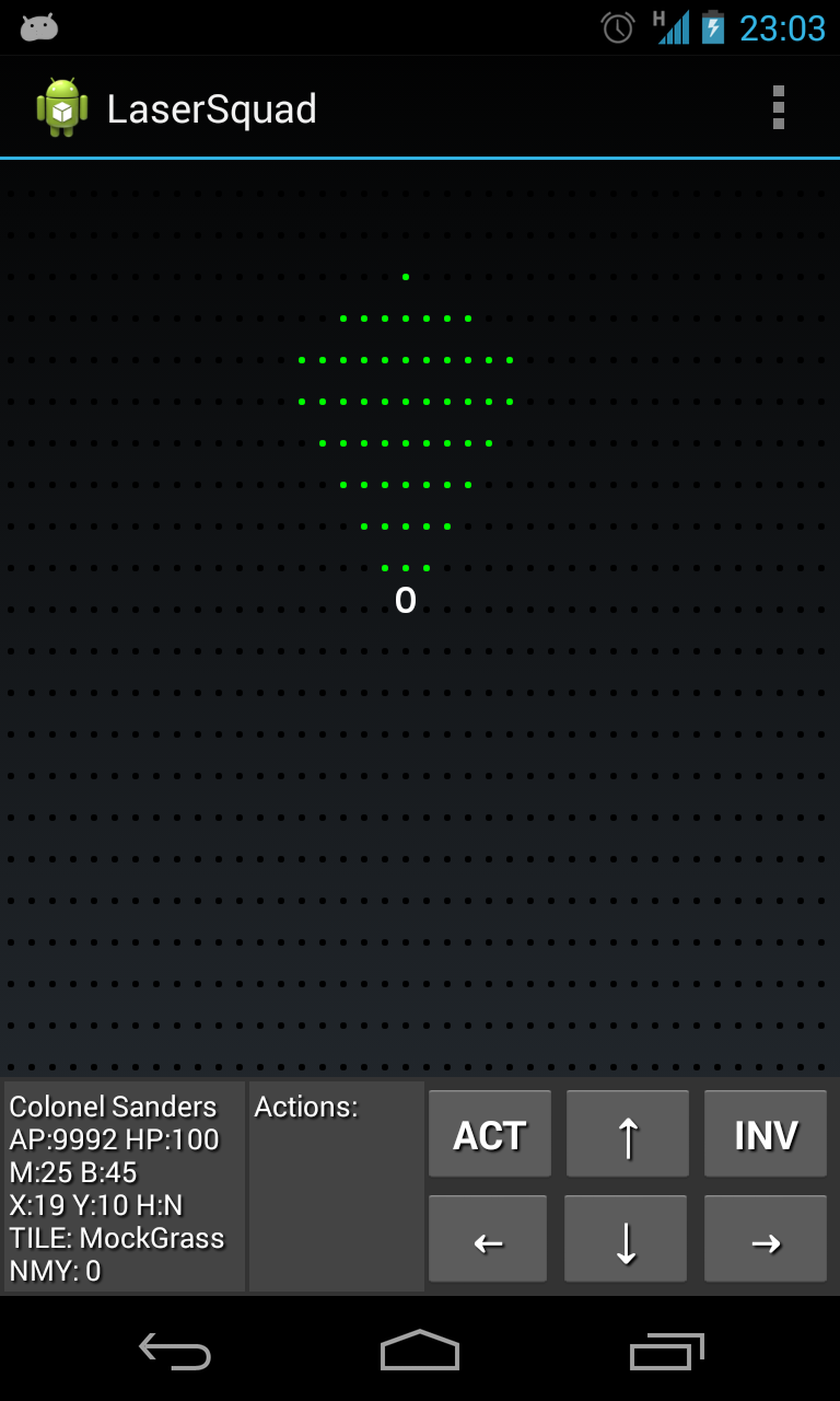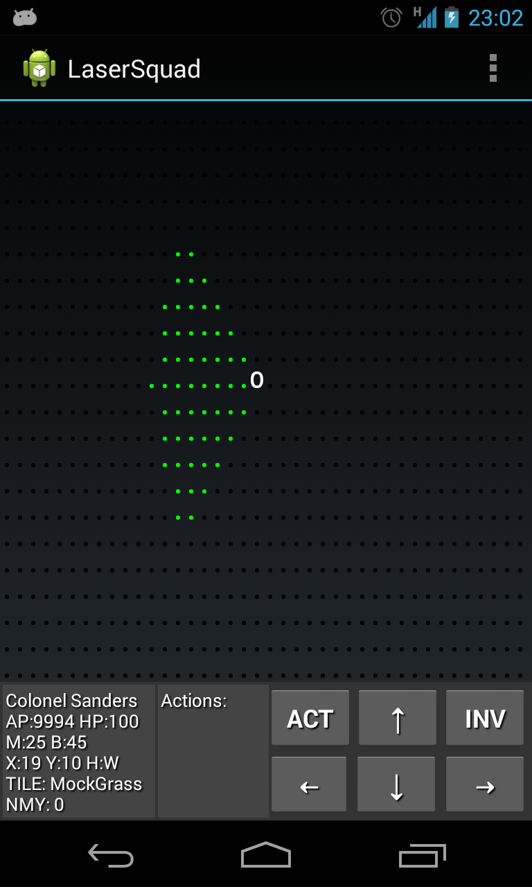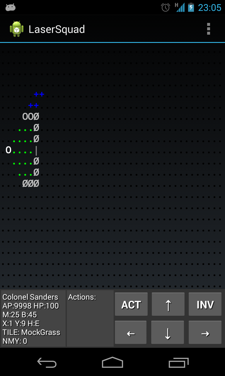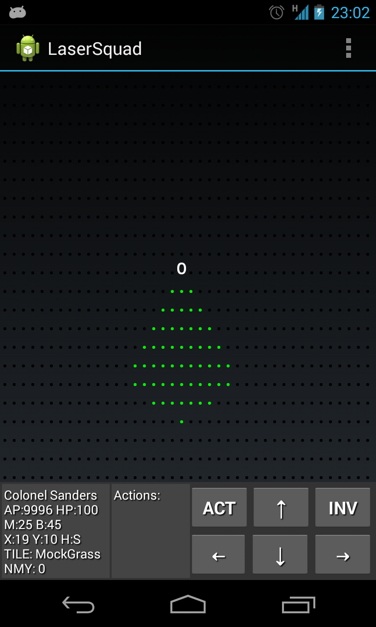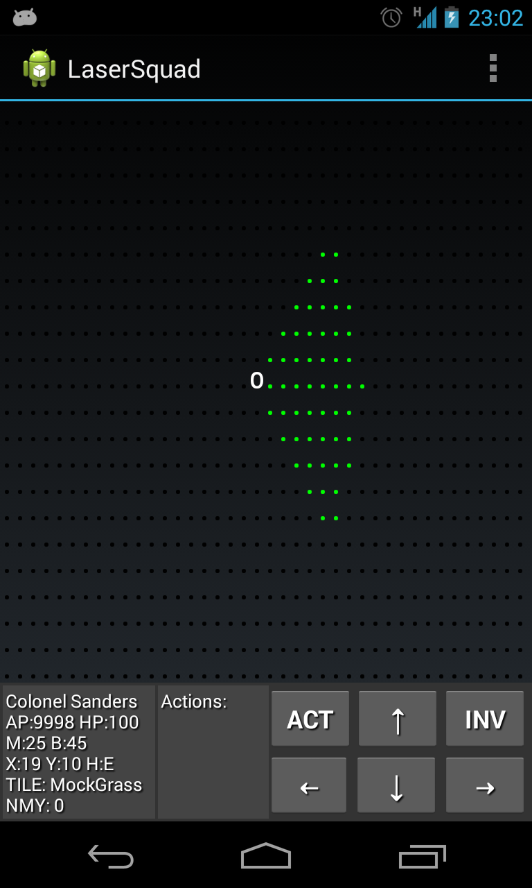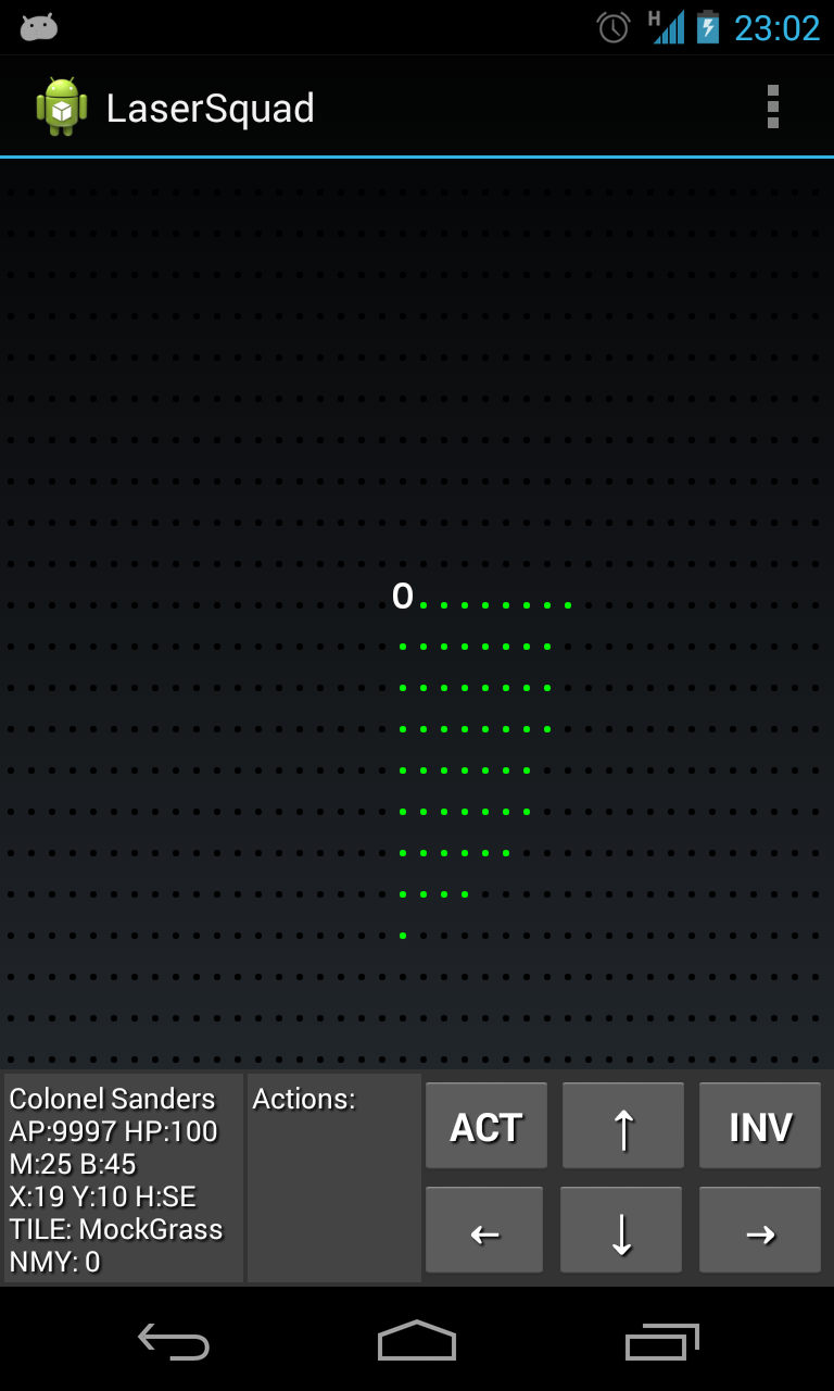 Since I made a mock scenario which uses our previously created mock map, I also added two teams and all units from the first scenario of the original Laser Squad game. Then I implemented methods to move to the next unit, that means all units in one team can be moved now; and also methods to end the turn so that next team has the opportunity to move their units. Of course now all units from one team are shown on the map in red color, and the currently selected unit remains white.